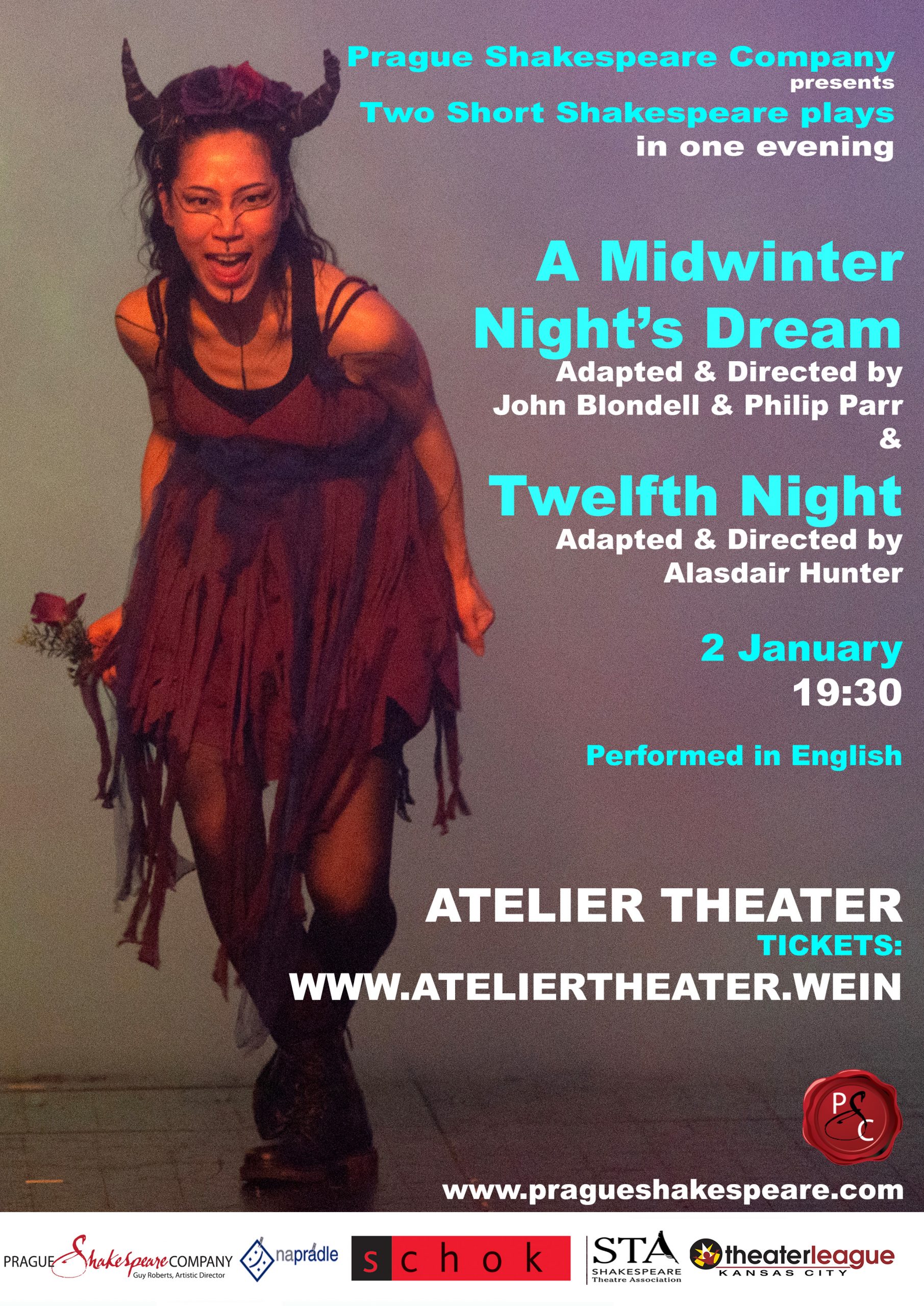 Prague Shakespeare Company, proudly presents a unique DOUBLE-BILL featuring two Short Shakespeare versions of timeless classics adapted into one special evening for the winter season: A Midwinter Night’s Dream and Twelfth Night.